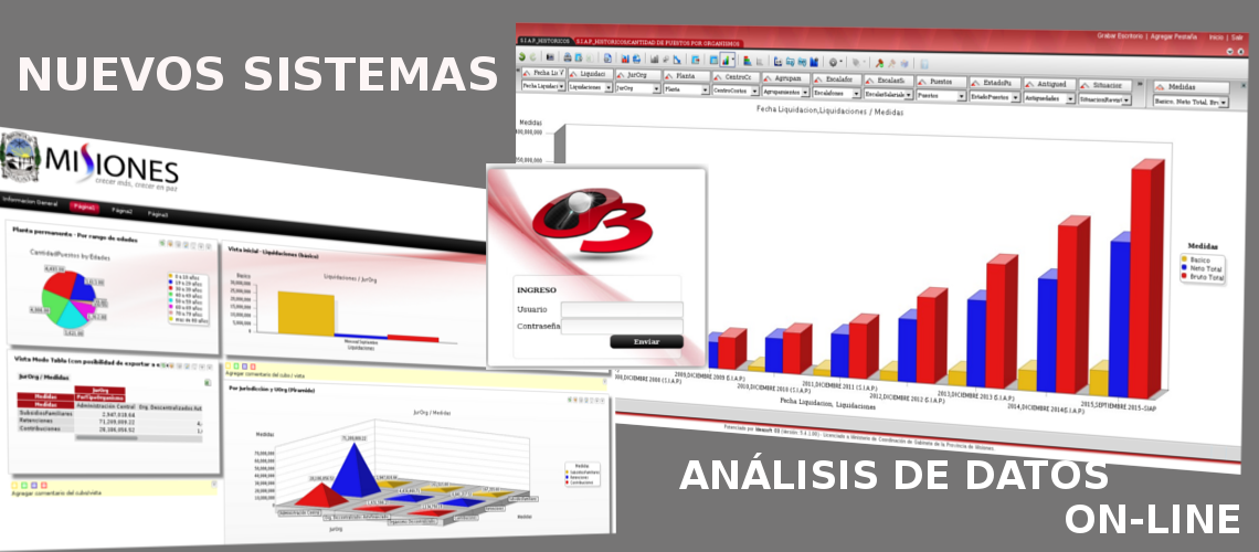 El Gobierno de la Provincia de Misiones ha propiciado la implementación y desarrollo de nuevas tecnologías para el procesamiento y análisis de datos. Nuevos equipos de computo provistos por complejos sistemas creados para el procesamiento analítico de datos en línea permitián obtener de manera ágil variables vitales para la toma de decisiones.